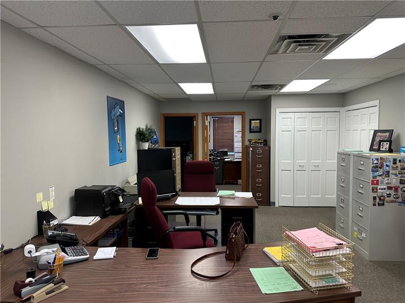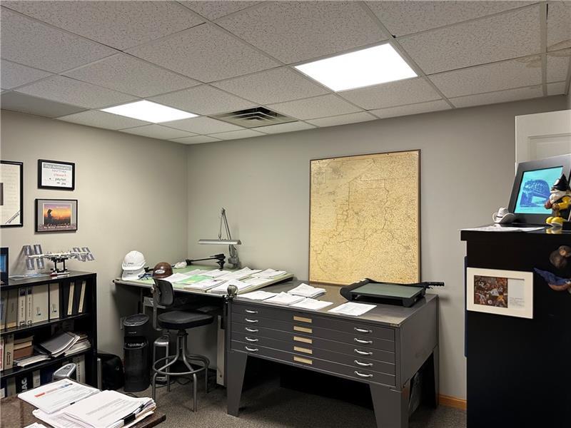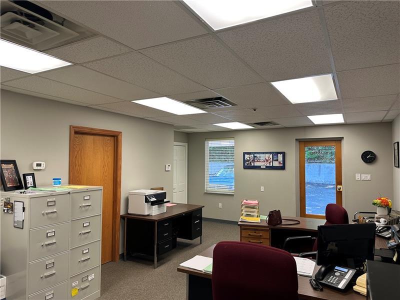 This move in ready space, located conveniently in the heart of Pleasant Hills on Gill Hall Rd by the intersection of Old Clairton Rd, is ideal for many professional types of business. It includes a large reception area and two private offices. There is a full bath, a kitchenette, and plenty of closet space. The driveway on the right side of the building leads to the rear lot where this space is located. There is plenty of parking available in the center, including parking directly in front of the space.